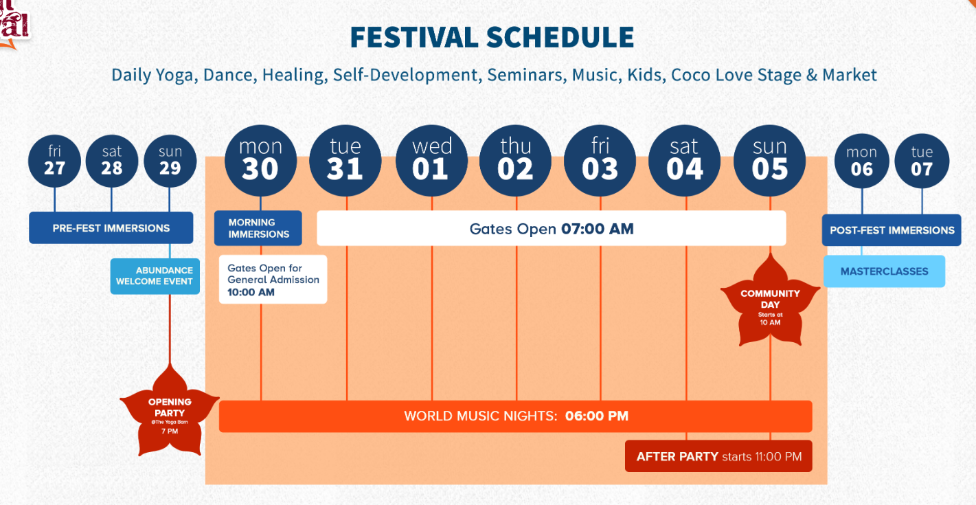 인도네시아 발리 우두부섬에서 매년 3~4월 사이 진행되는 축제입니다. 2008년부터 시작이 되었으며, 이 기간에 전 세계의 요가인들이 발리로 모여들기 시작합니다. 음악, 춤, 요가가 공존하는 이 축제는 전 대륙에서 음악가들 뿐만 아니라 요가인들과 댄서들까지 참여합니다. 아프리카, 인도네시아, 호주, 원주민들의 전통리드믕ㄹ 한자리에 모아 공연을하며, 공연의 수익금은 공익사업을 위해 사용이 됩니다.