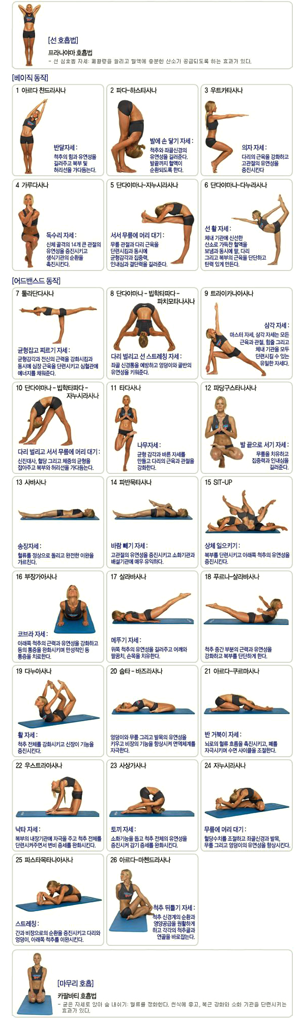 > 핫요가 비크람요가의 26가지 동작 시퀀스