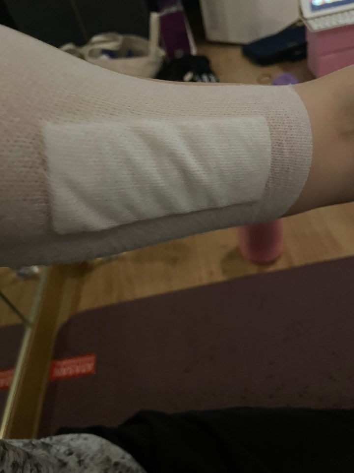 당일날은 물 샤워하지 않는 것을 권장합니다. 일이 끝나고 집에 와서 오후 10시쯤에 거즈를 떼보니, 이렇게 붉게 물들어 있었습니다. 발목에서 약간 욱신욱신하고 다른곳은 전혀 이상이 없었습니다. 의사선생님과, 간호사 쌤이 레이저도 중요하지만 6주 후에 올때까지 관리가 너무 중요하다고 합니다. 재생크림, 연고 잘 바르고 자외선에 노출되지 않는 것이 중요하다고 하니, 잘 관리를 하고 있습니다.