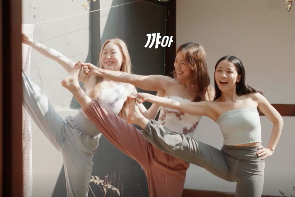 친구들과 함께 찍은 장면도 셋의 조화가 너무 이쁘더라구요. 세분이 입은 요가복도 이쁘고, 세분 모두 너무 잘 어울리시는 것 같아요. 찬드라 제품은 아니고, 다른 브랜드의 제품입니다.