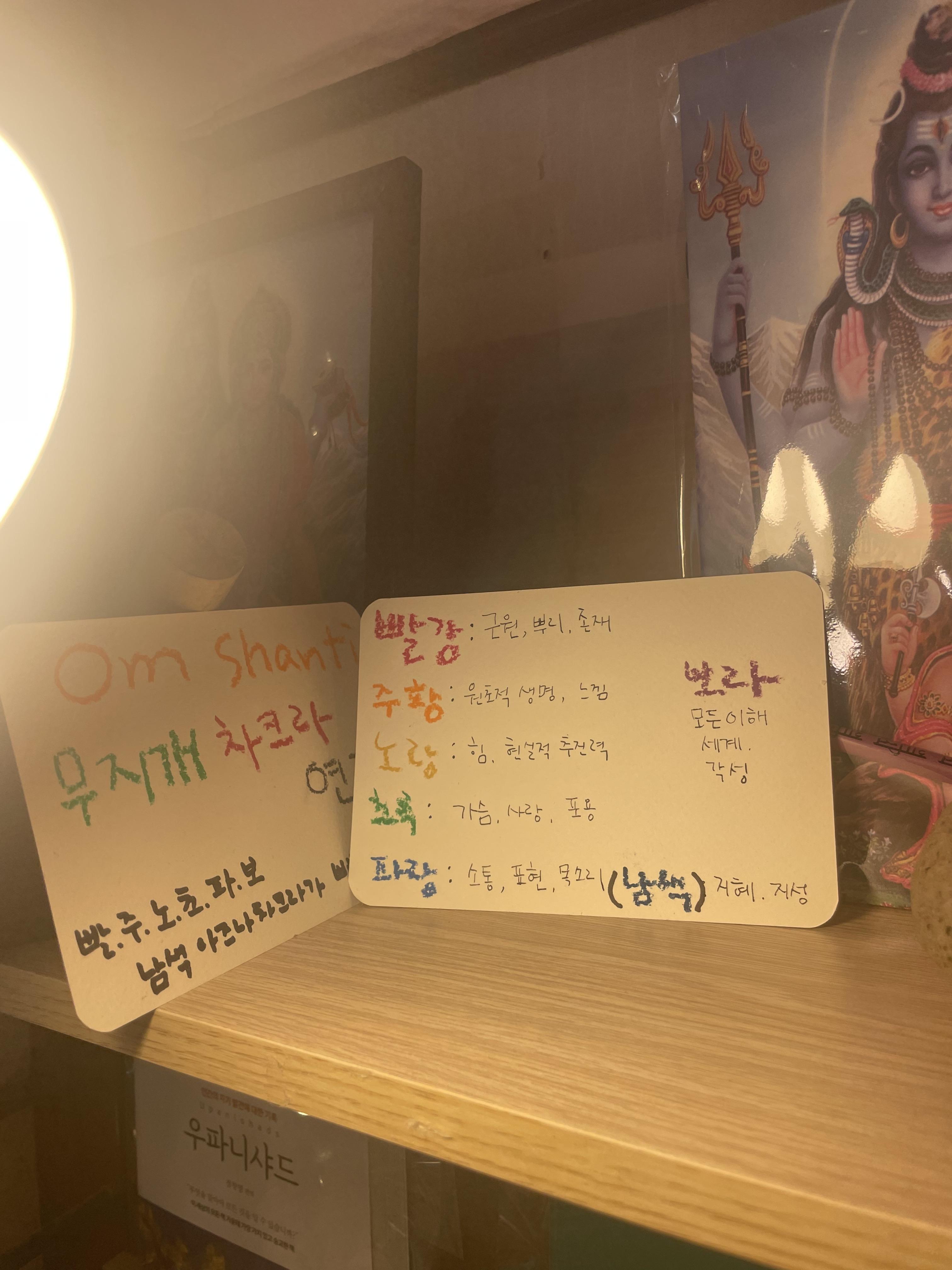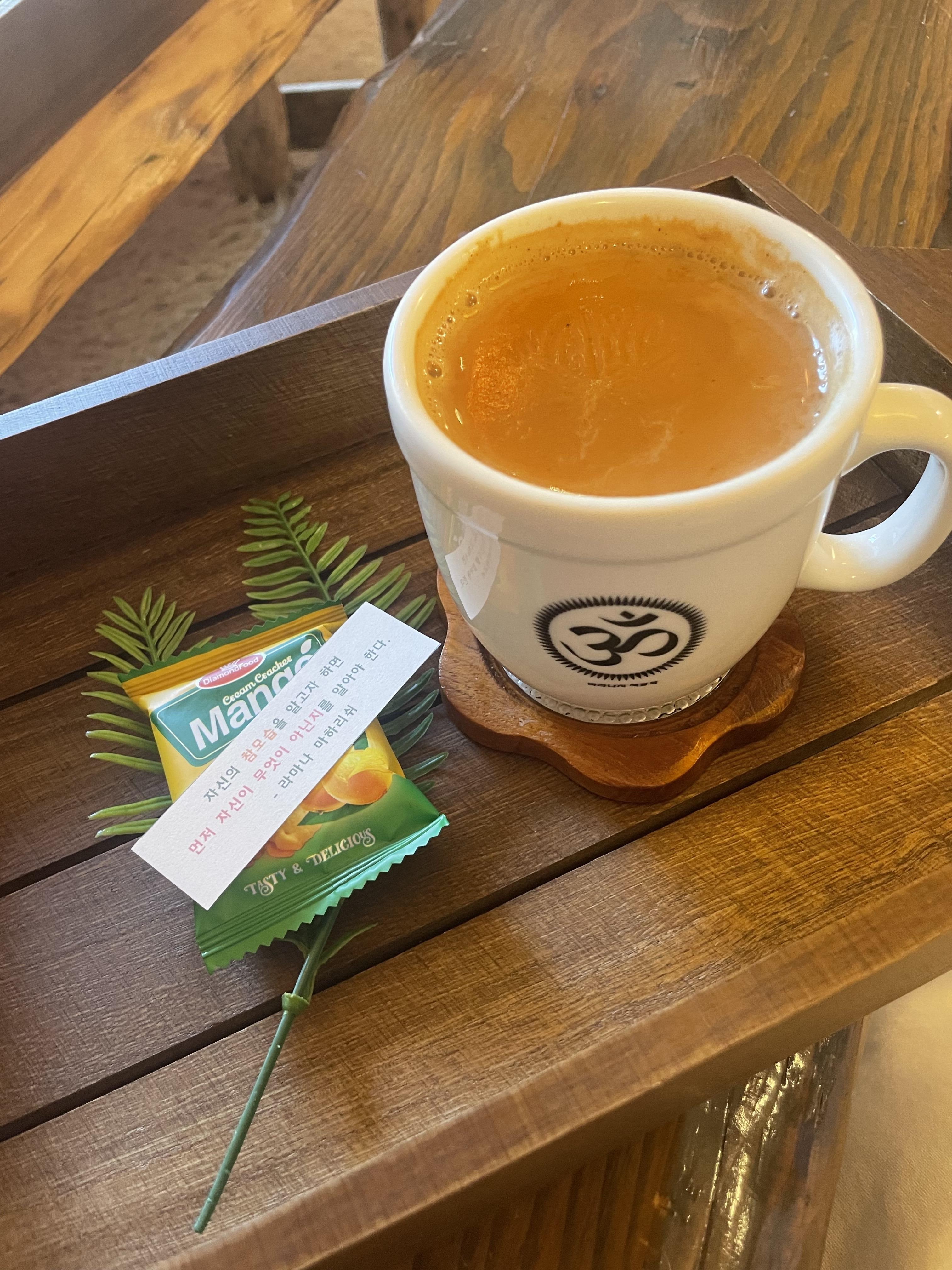 옴과 여러가지 책들이 굉장히 많이 있었어요. 제가 좋아하는 영적인 서적들이 굉장히 많아서, 너무 좋았습니다. 짜이를 먹고 싶어서 짜이도 주문했어요. 주인 사장님으로 보이는 사장님 정말 친절하게 이야기해주어서 너무 편안했습니다.