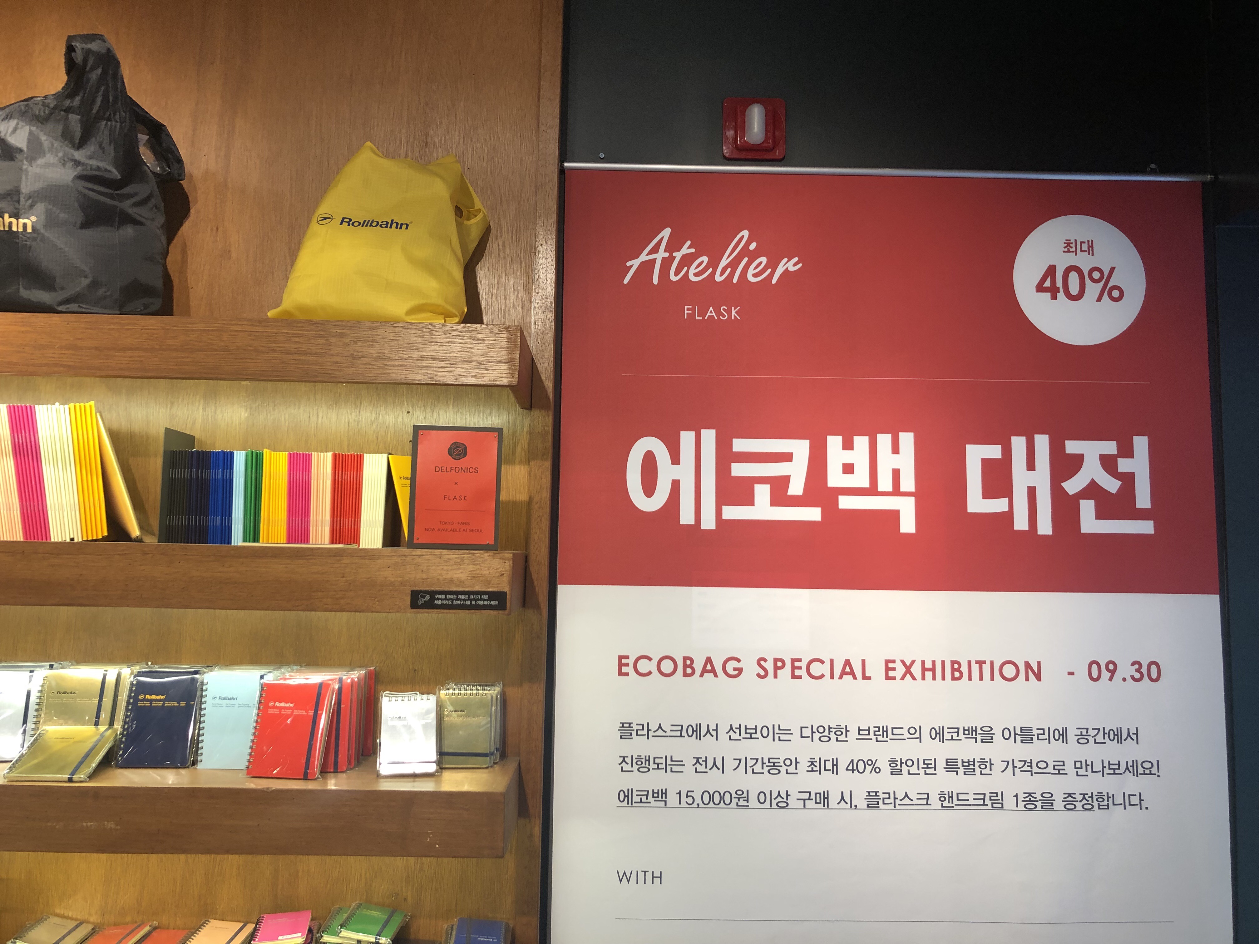 저는 에코백을 구매하기 위해 플라스크에 방문한 것이기 때문에, 바로 에코백 할인이 눈에 뛰게 되었습니다. 15,000원 이상 구매 시, 핸드크림도 증정한다고 하니 바로 에코백 쇼핑을 하게 되었습니다.
