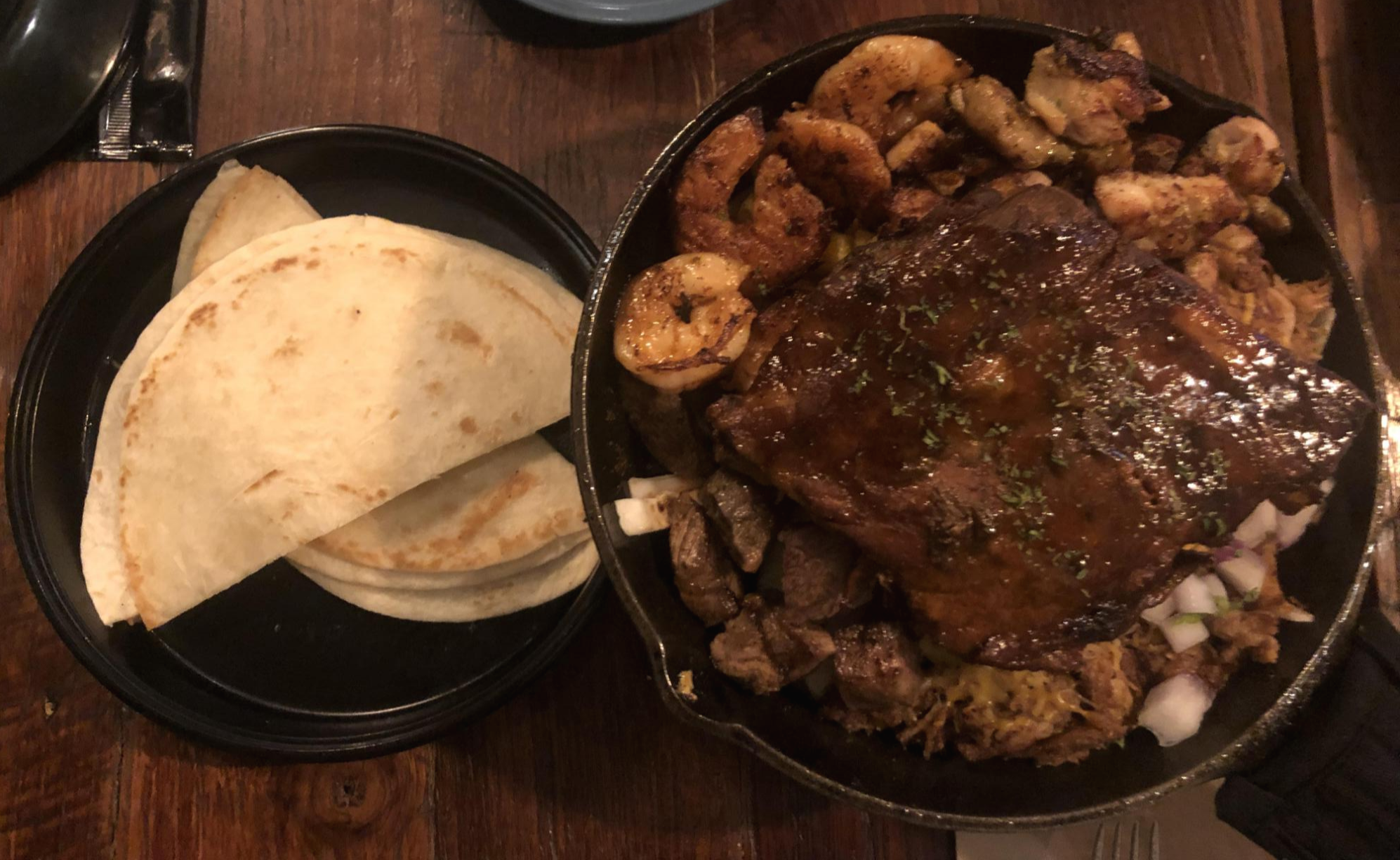 샹그리아 + 나초가 바로 주문가 동시에 나왔습니다. 립이 나오기 전까지 나초를 흡힙하던 중에 주문한 스페셜파히타 데킬라립이 나왔습니다.