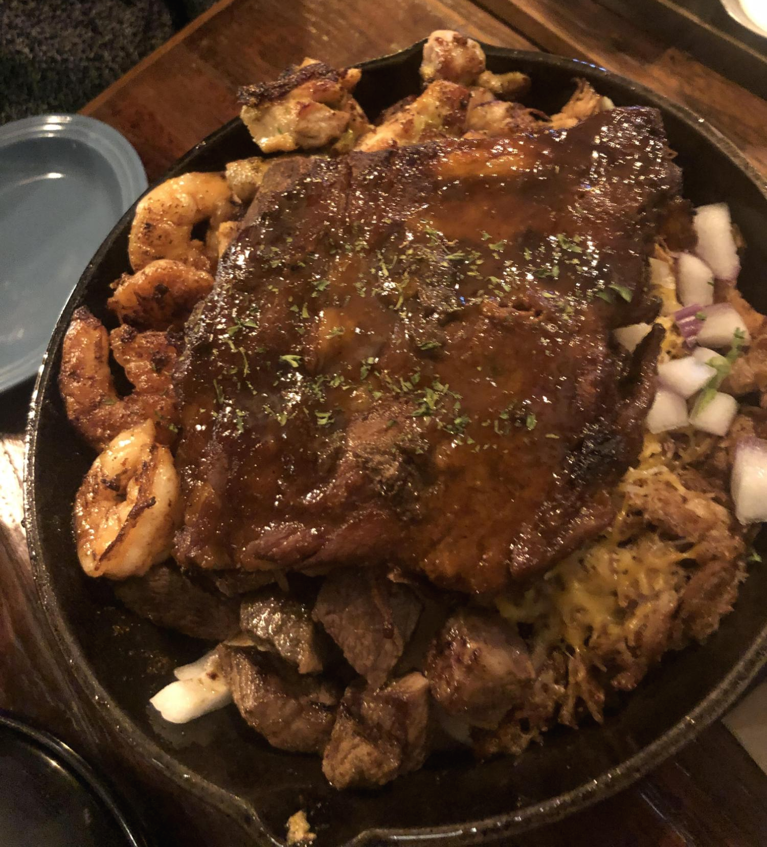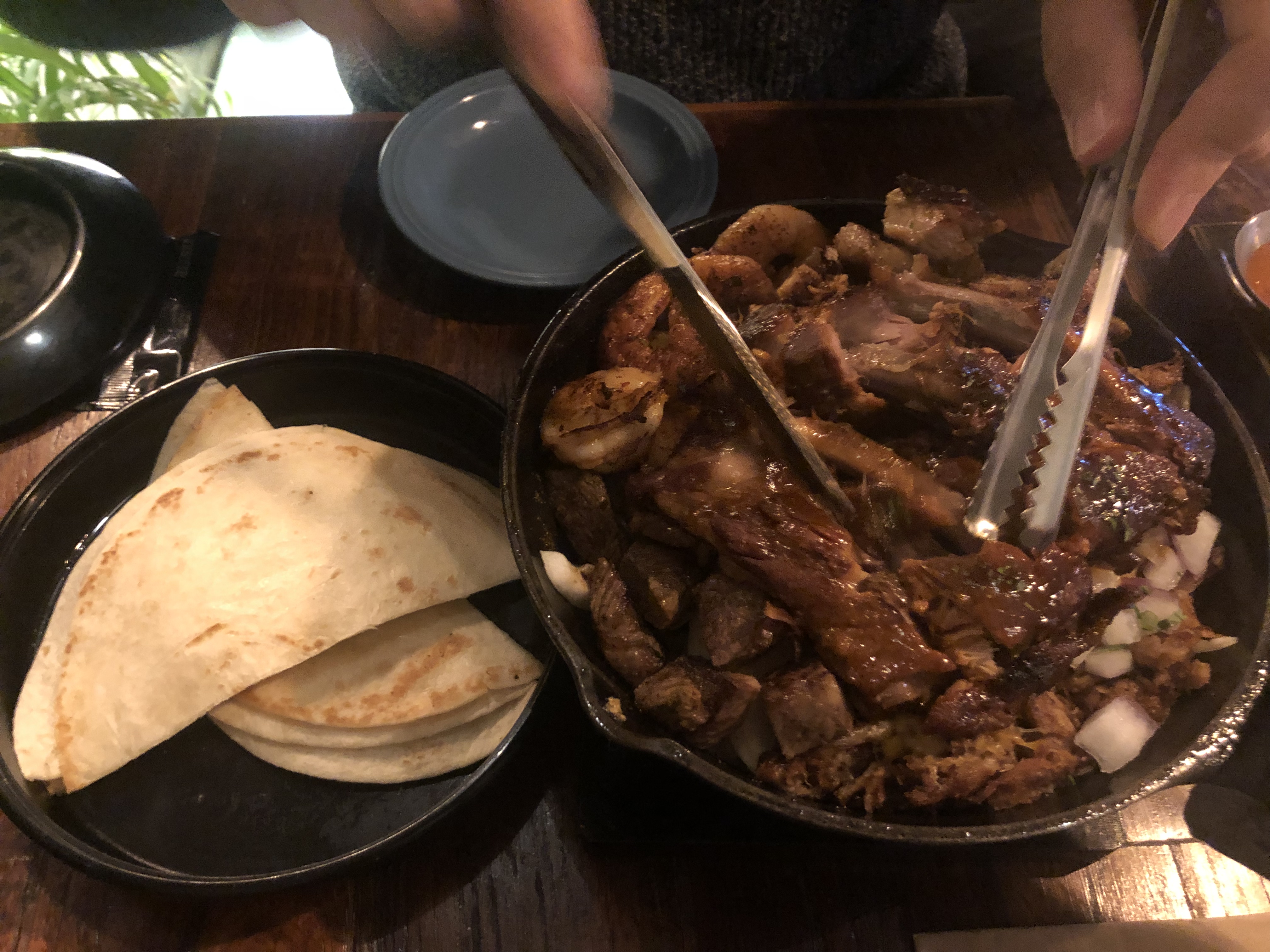 이렇게 여러가지 소스와 함께 겹들려서 본인의 취향대로 싸서 먹으면 됩니다. 립이 정말정말 너무 부드러워서 깜짝놀랐습니다. 새우와 양파와 함께 먹었는데, 정말 "우와!"하는 깜짝놀라는 맛. 너무 맛있었습니다. 한입 먹는 순간 저희는 말도 없이 폭풍 흡힙하면서 30분도 안되서 다 먹었던 것 같습니다.