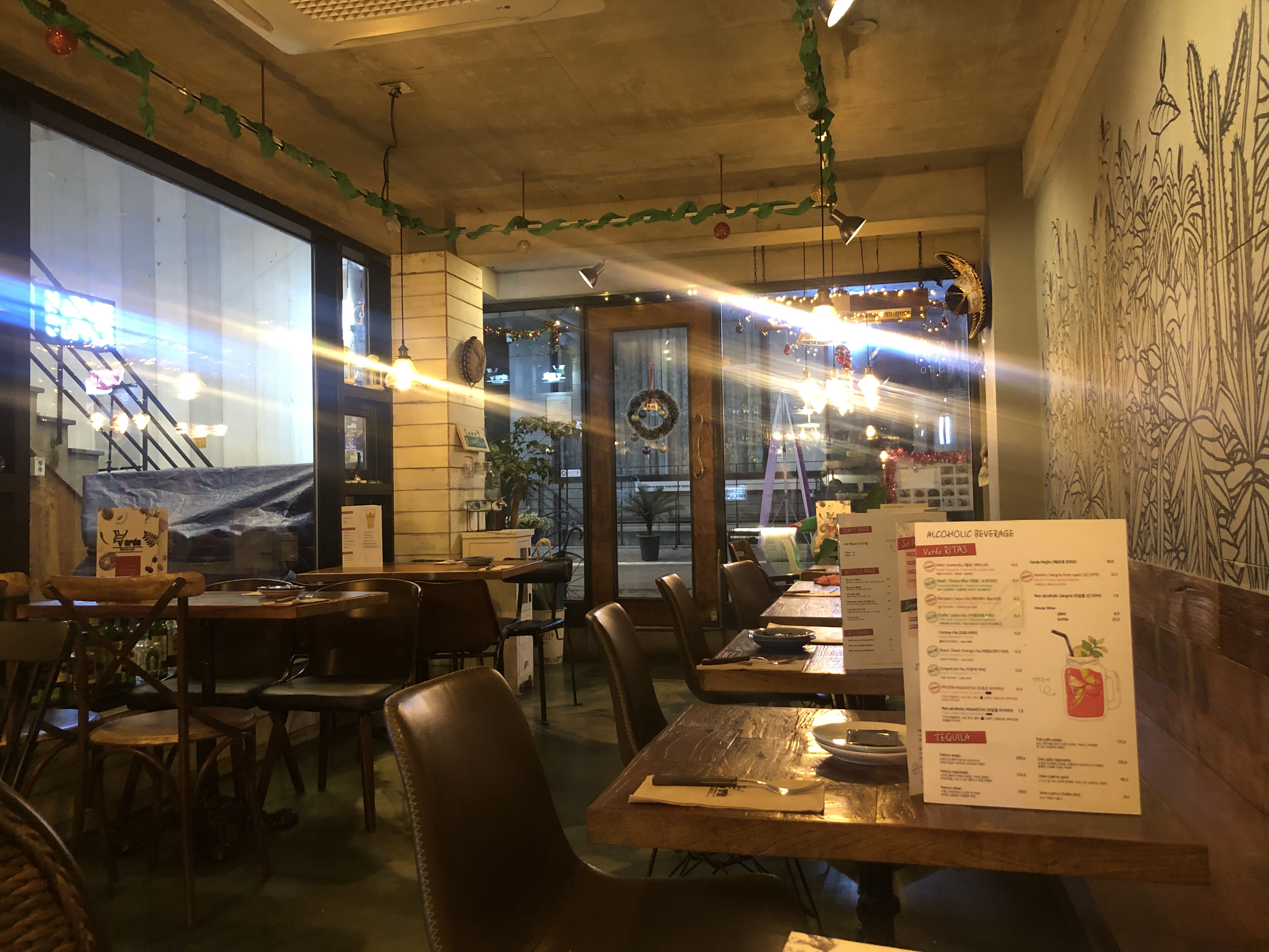 밖에서 봤을 때, 크지 않지만 안에 들어가보시면 테이블도 은근히 많고 아담한 분위기를 느낄 수 있었던 베르데였습니다.